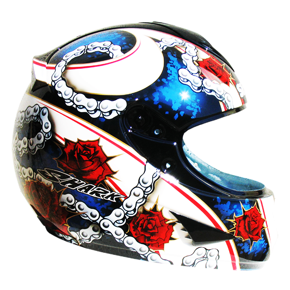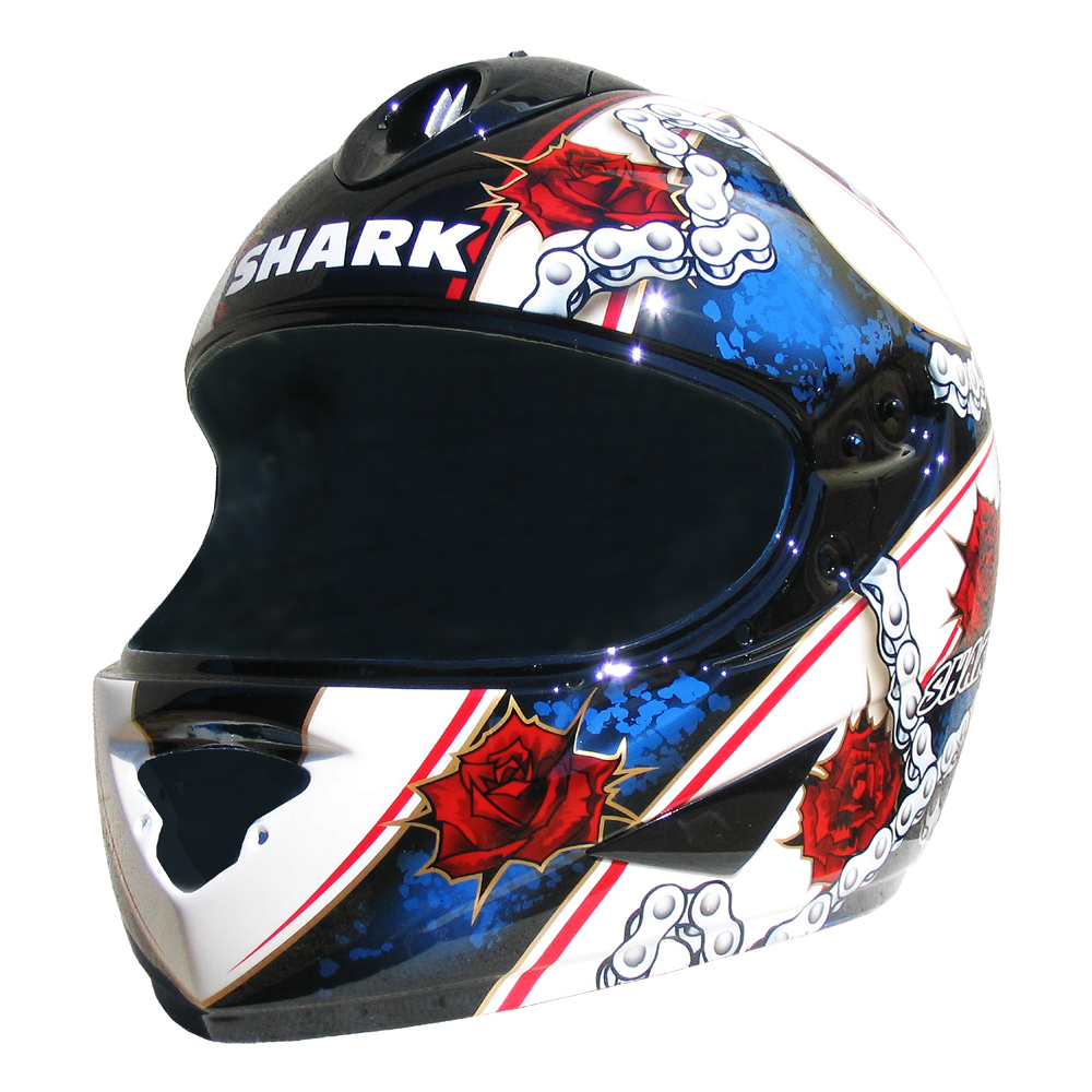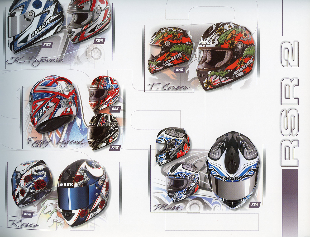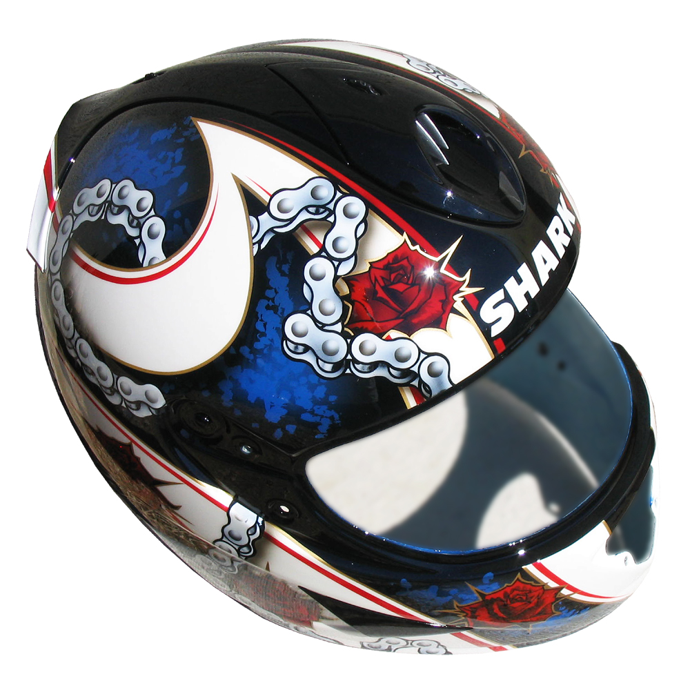 Prototype Série 2006 Shark Roses Casque Shark RSR 2, peint par Christian Roux / Rainbow Colors en 2006 pour la marque Shark. Précédent Suivant