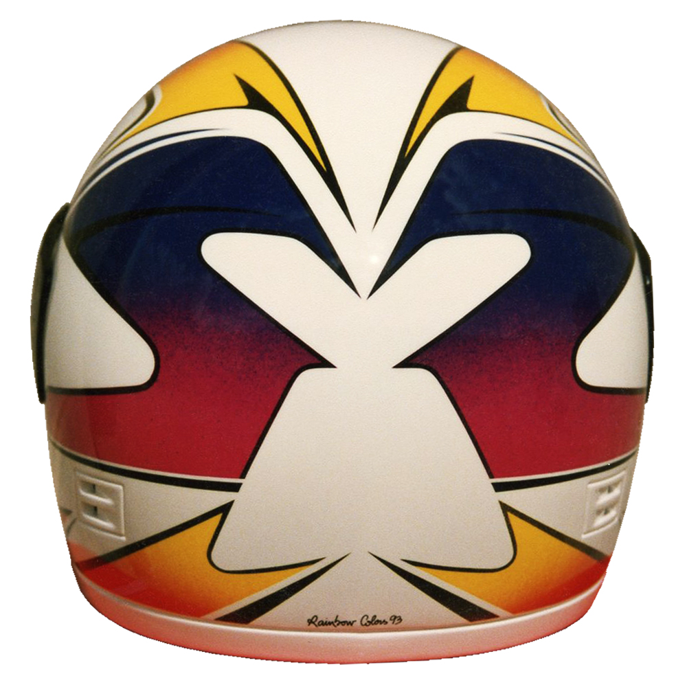 Prototype Série 1993 Slyder DX 4B Casque Slyder DX 4B, peint par Christian Roux / Rainbow Colors en 1993 pour la marque Slyder. Précédent Suivant