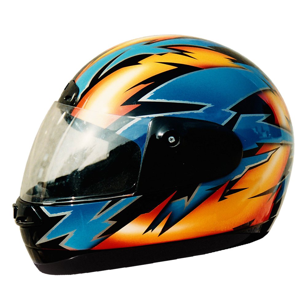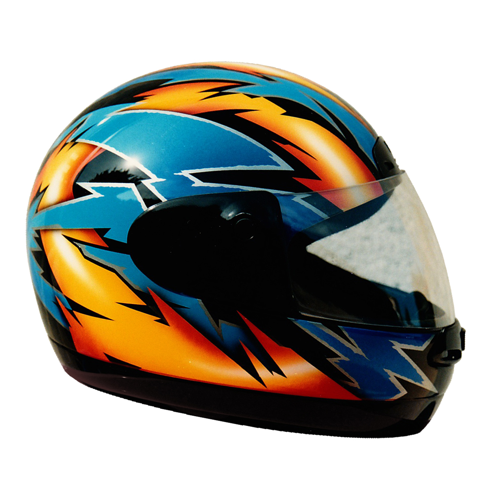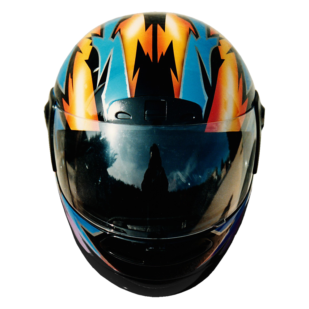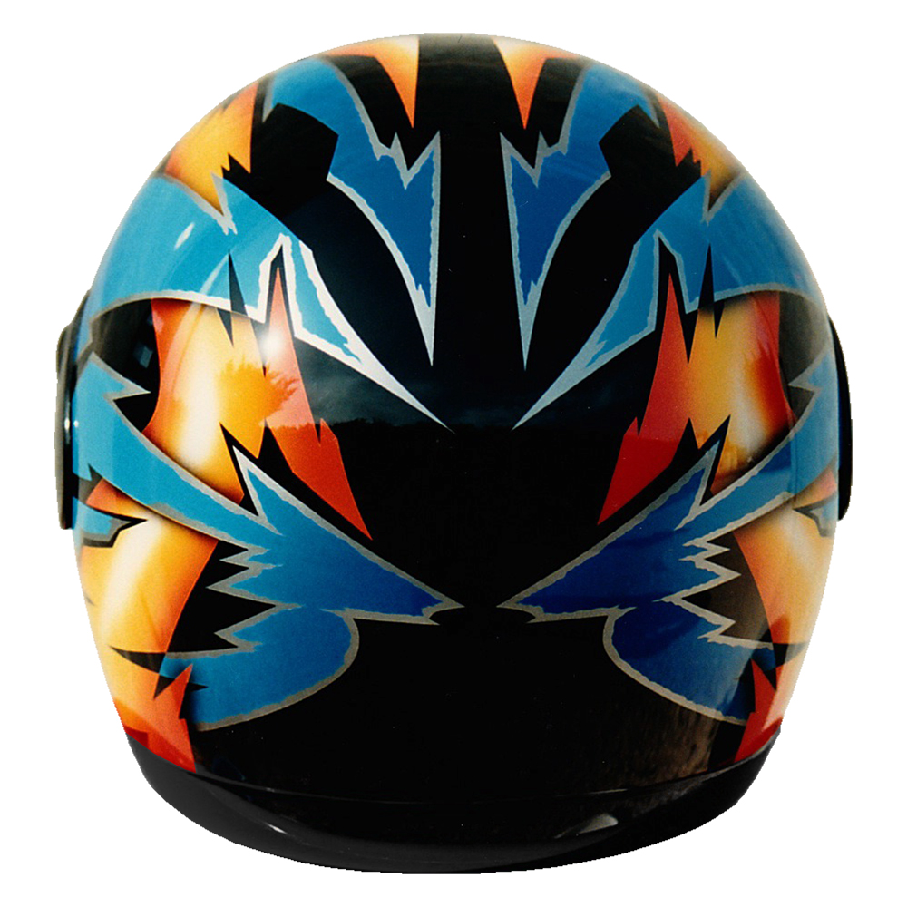 Prototype Série 1993 FM Noir Bleu Orange Casque FM Prototype, peint par Christian Roux / Rainbow Colors en 1993 pour la marque FM. Précédent Suivant