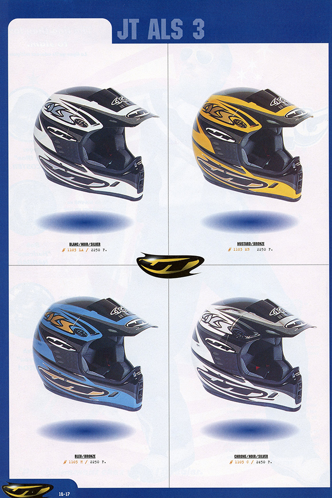 Prototype Série 1996 JT ALS3 Jaune Casque JT ALS3, peint par Christian Roux / Rainbow Colors en 1996 pour la marque JT, design Xavier Marigo. Précédent Suivant