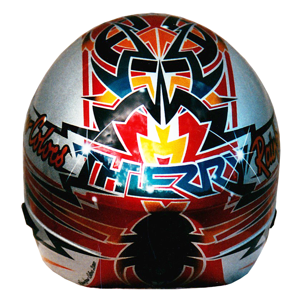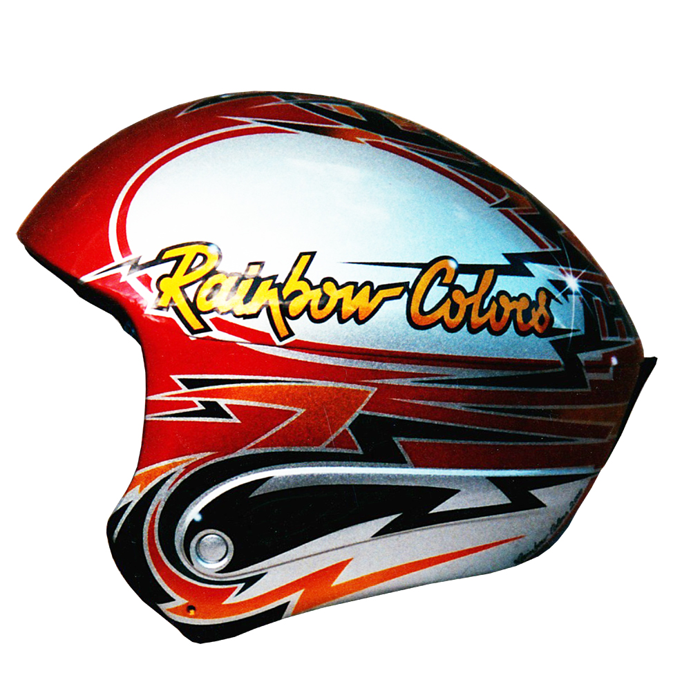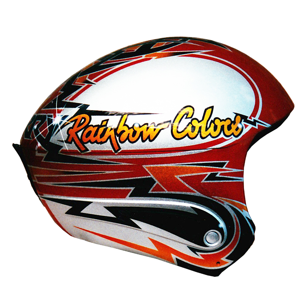 Ski 2000 Thierry ISNEL Casque de ski descente Scott, crée et peint par Christian Roux / Rainbow Colors en 2000 pour Thierry Isnel, Sun Valley Précédent Suivant