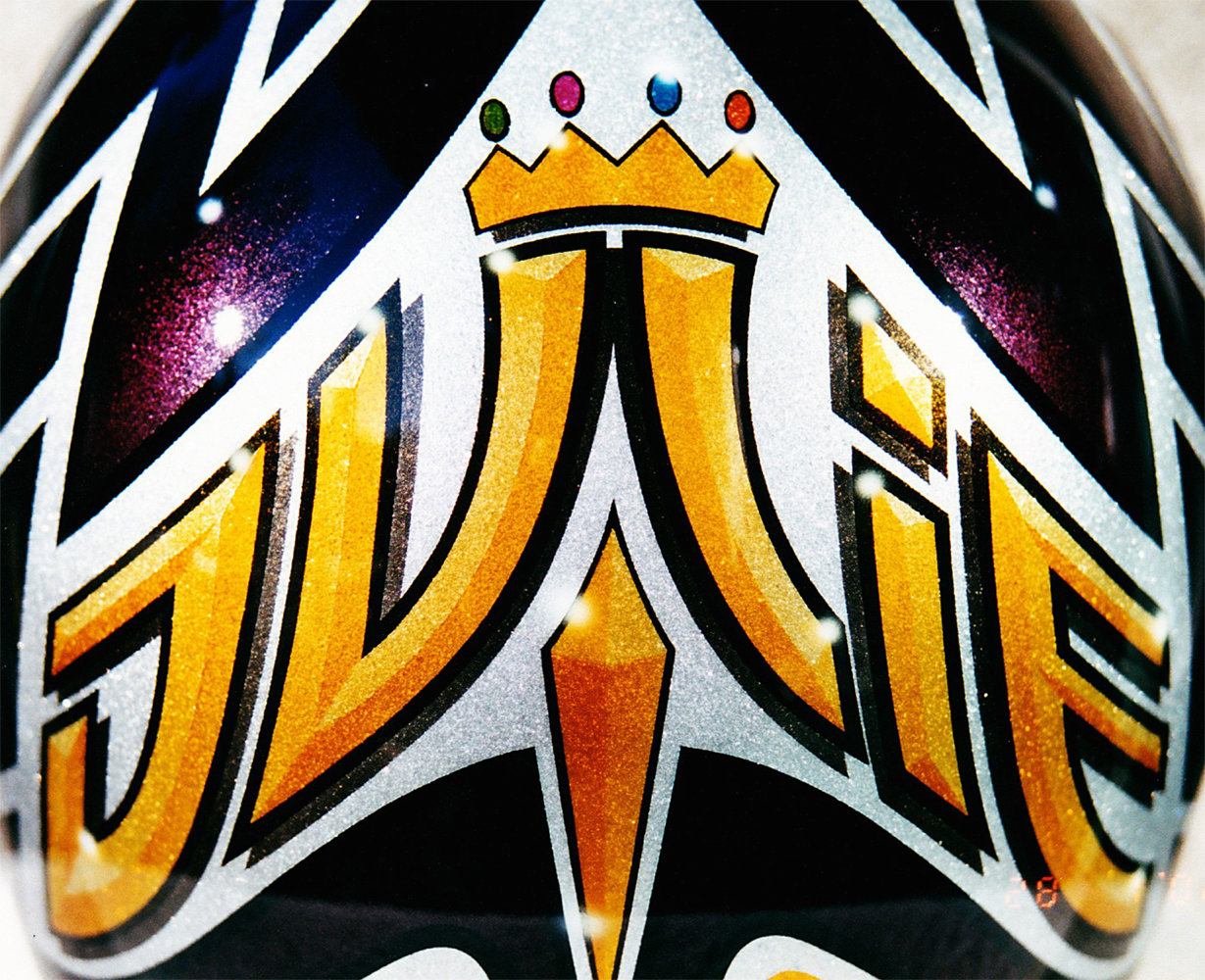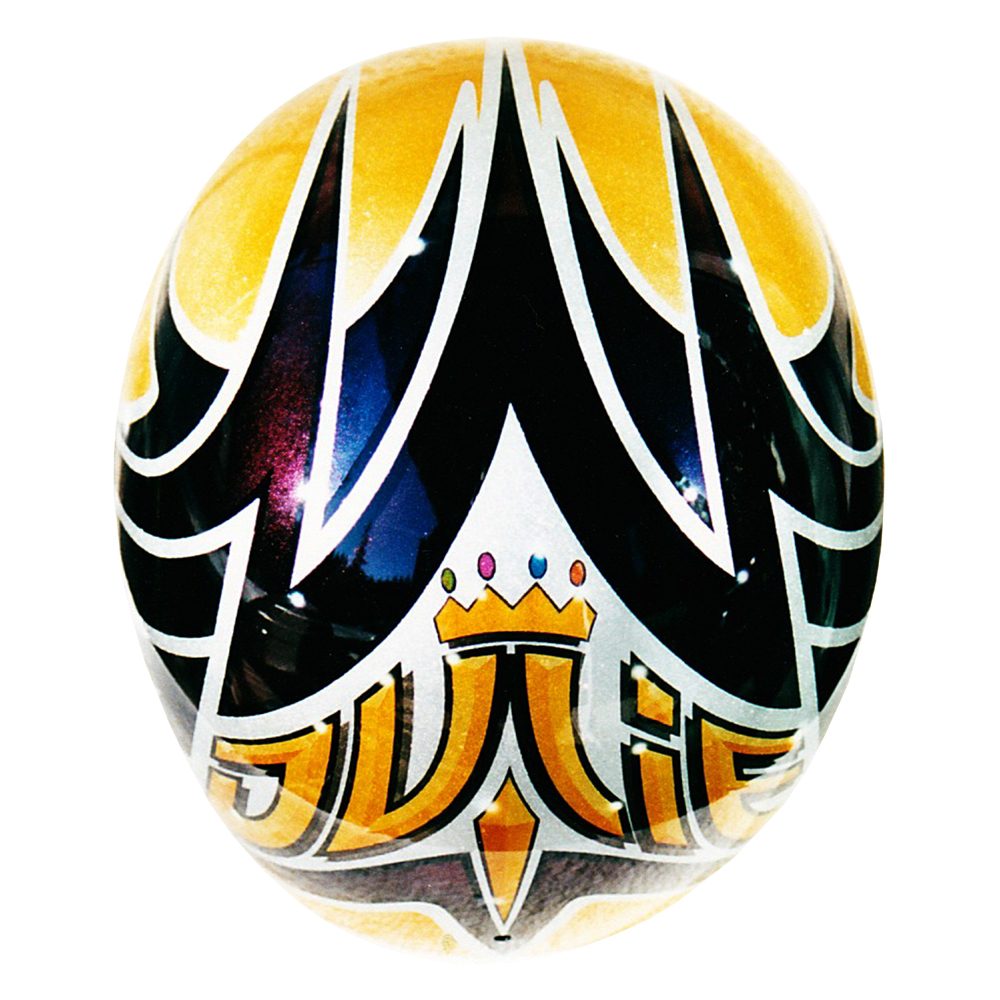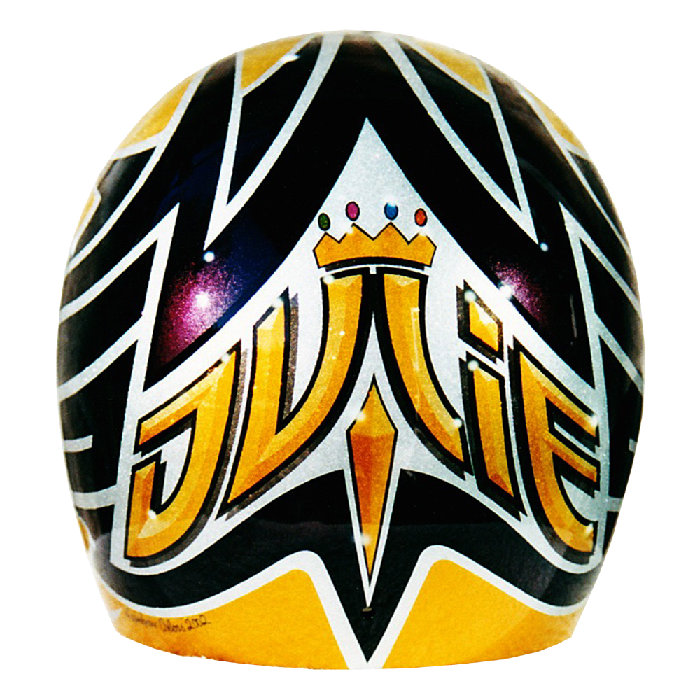 Ski 2002 Julie POMAGALSKI Casque de ski snowboard, crée et peint par Christian Roux / Rainbow Colors en 2002 pour Julie Pomagalski, équipe de France aux J.O. de Salt Lake City Précédent Suivant